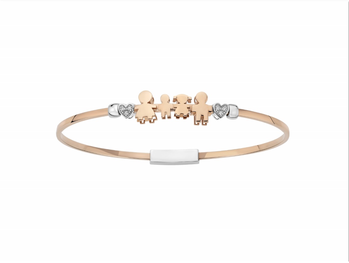 Rose silver bangle bracelet with 18 kt rose gold, 18 kt white gold and diamond elements.