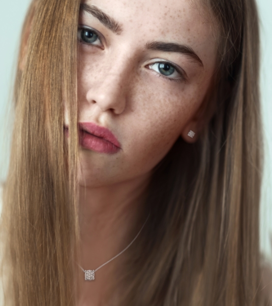 Colpo d’occhio in oro bianco, diamanti e inserto in smalto rosso