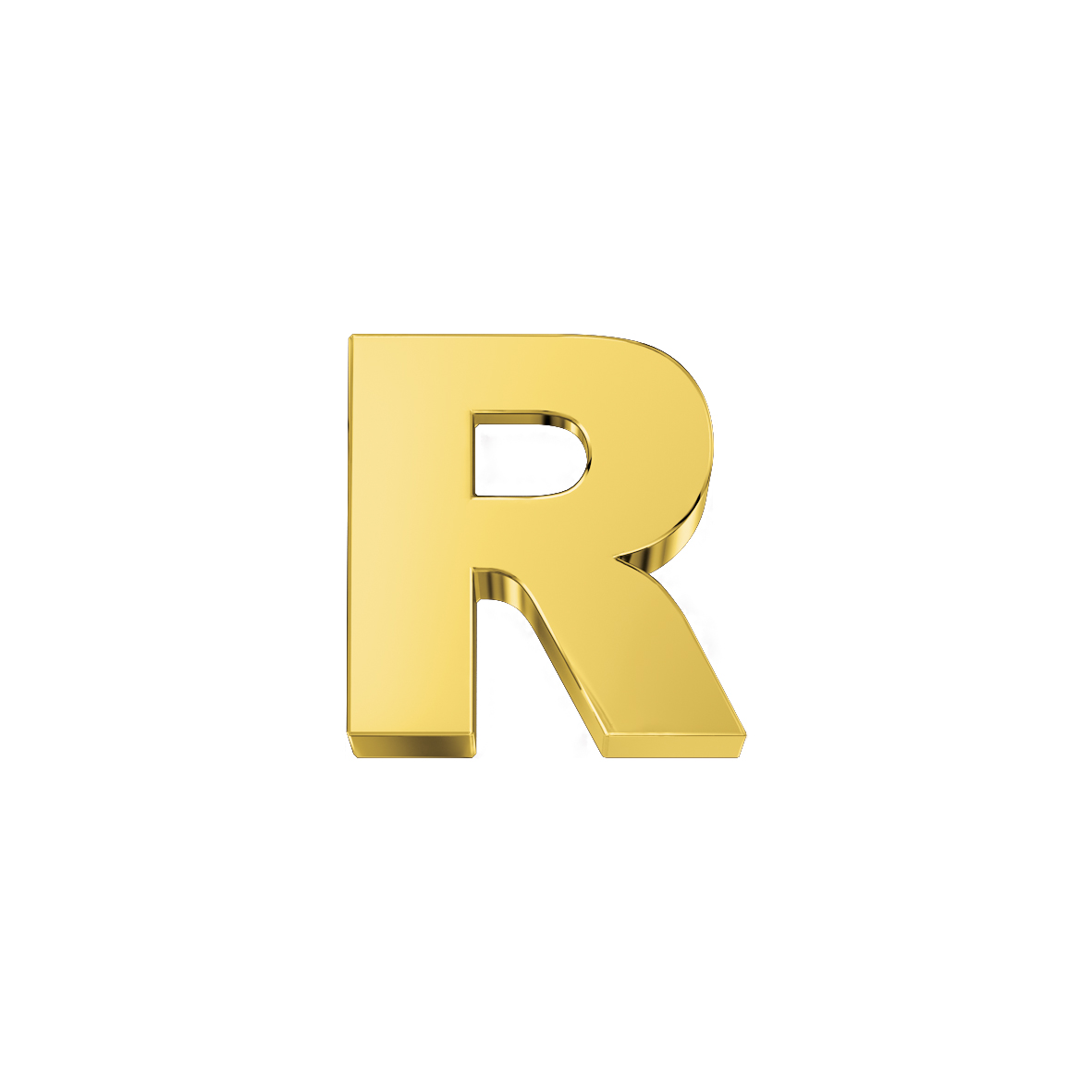 Elemento Lettera R Classica in oro giallo 18 kt.